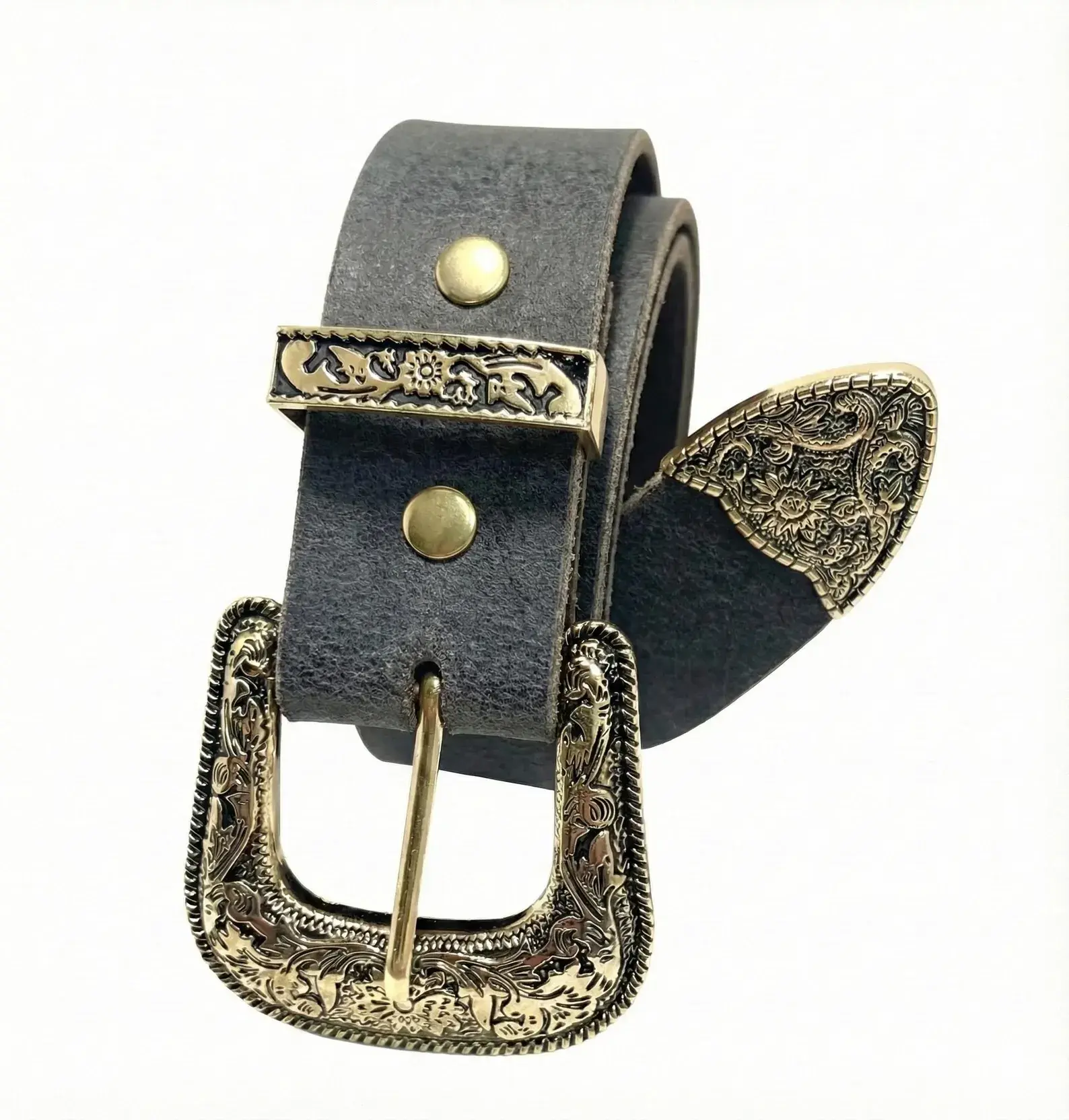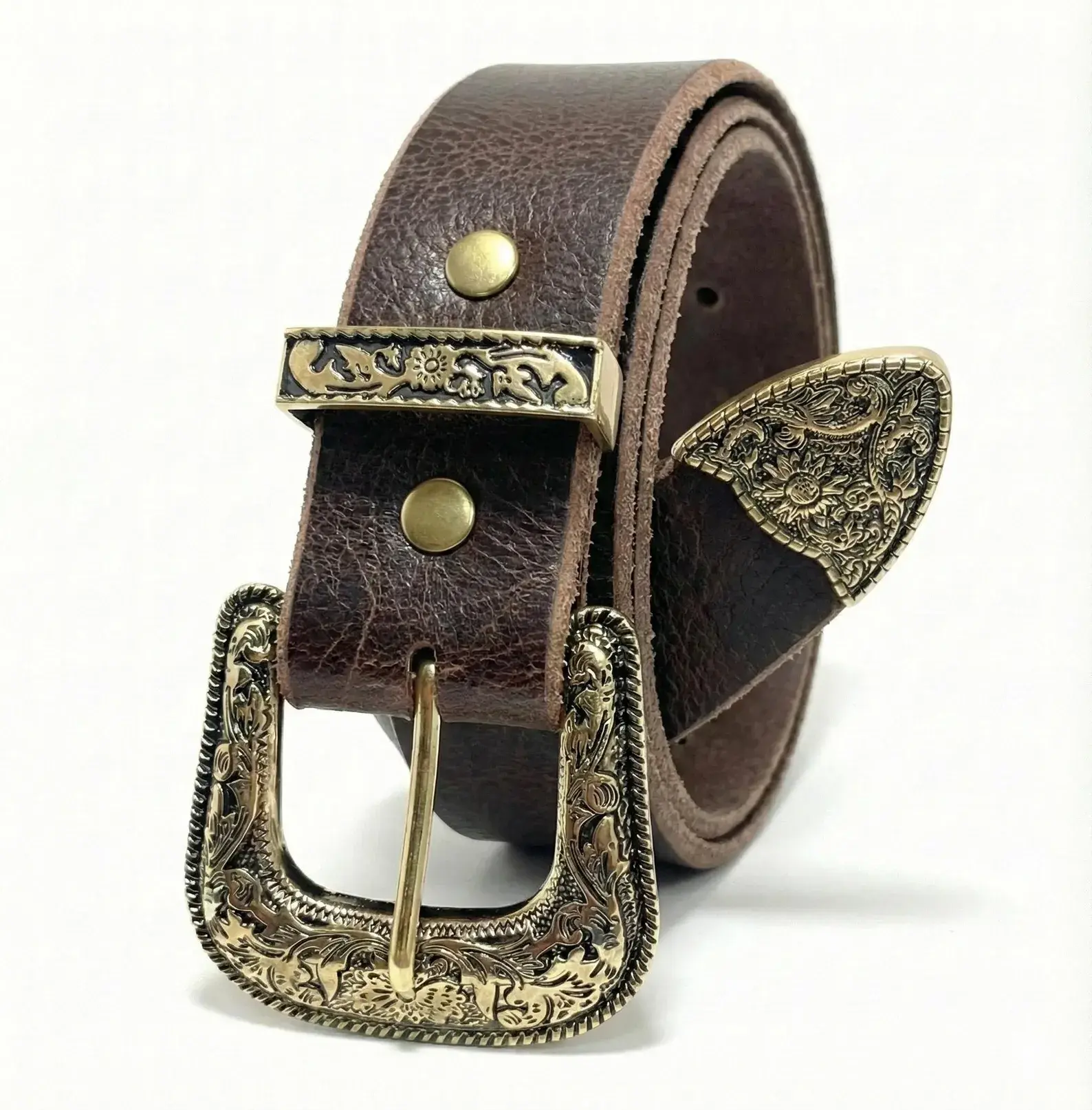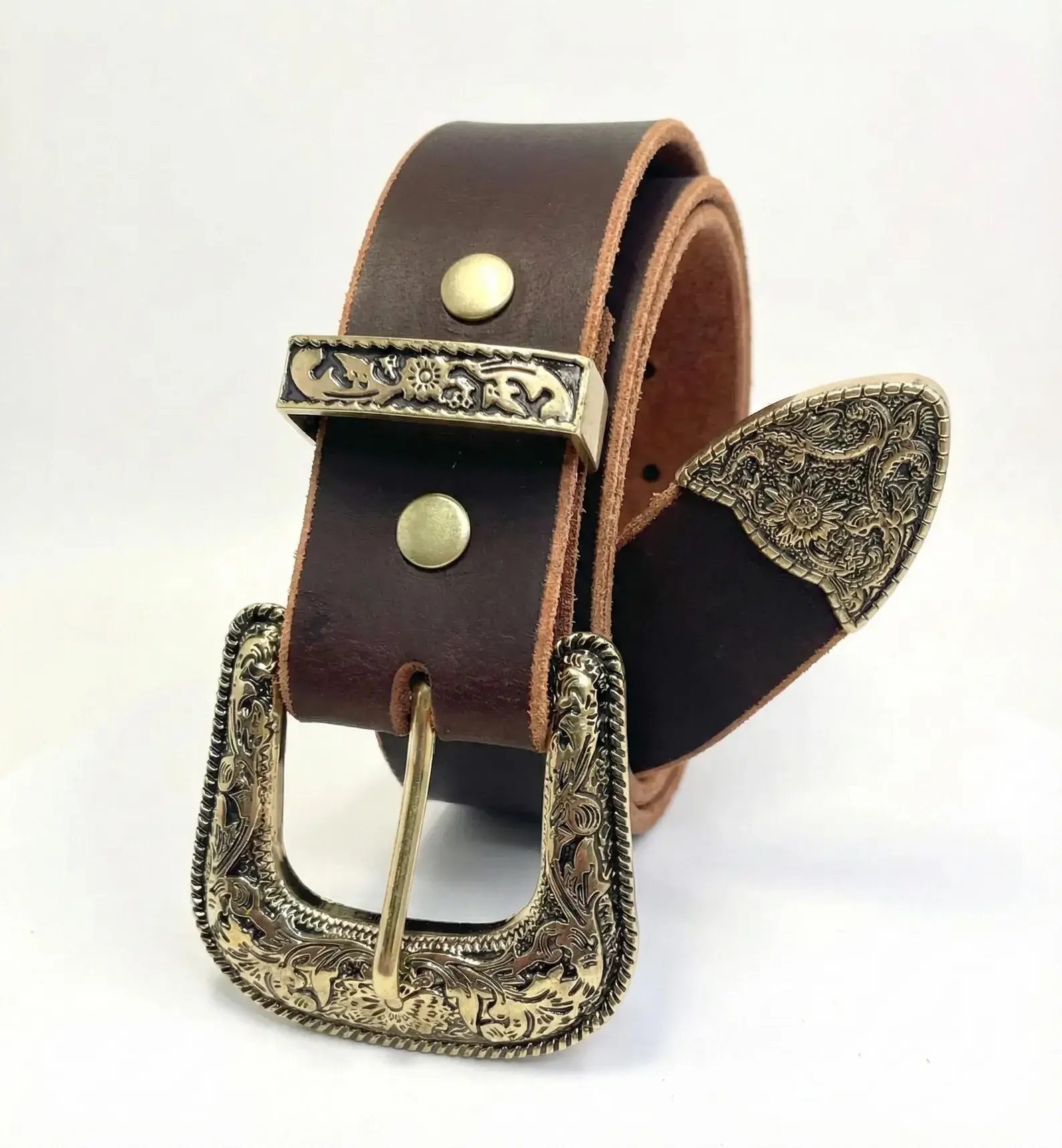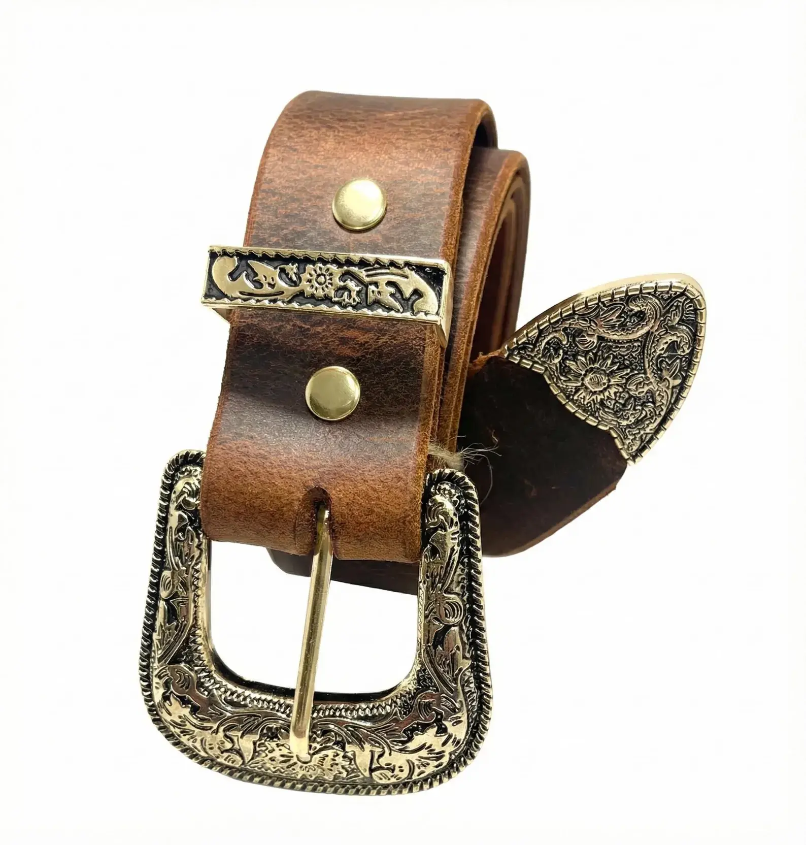 Artisan Western Leather Belt (1.5") | Hand-Assembled Premium Leather | Gold Luxury Fittings