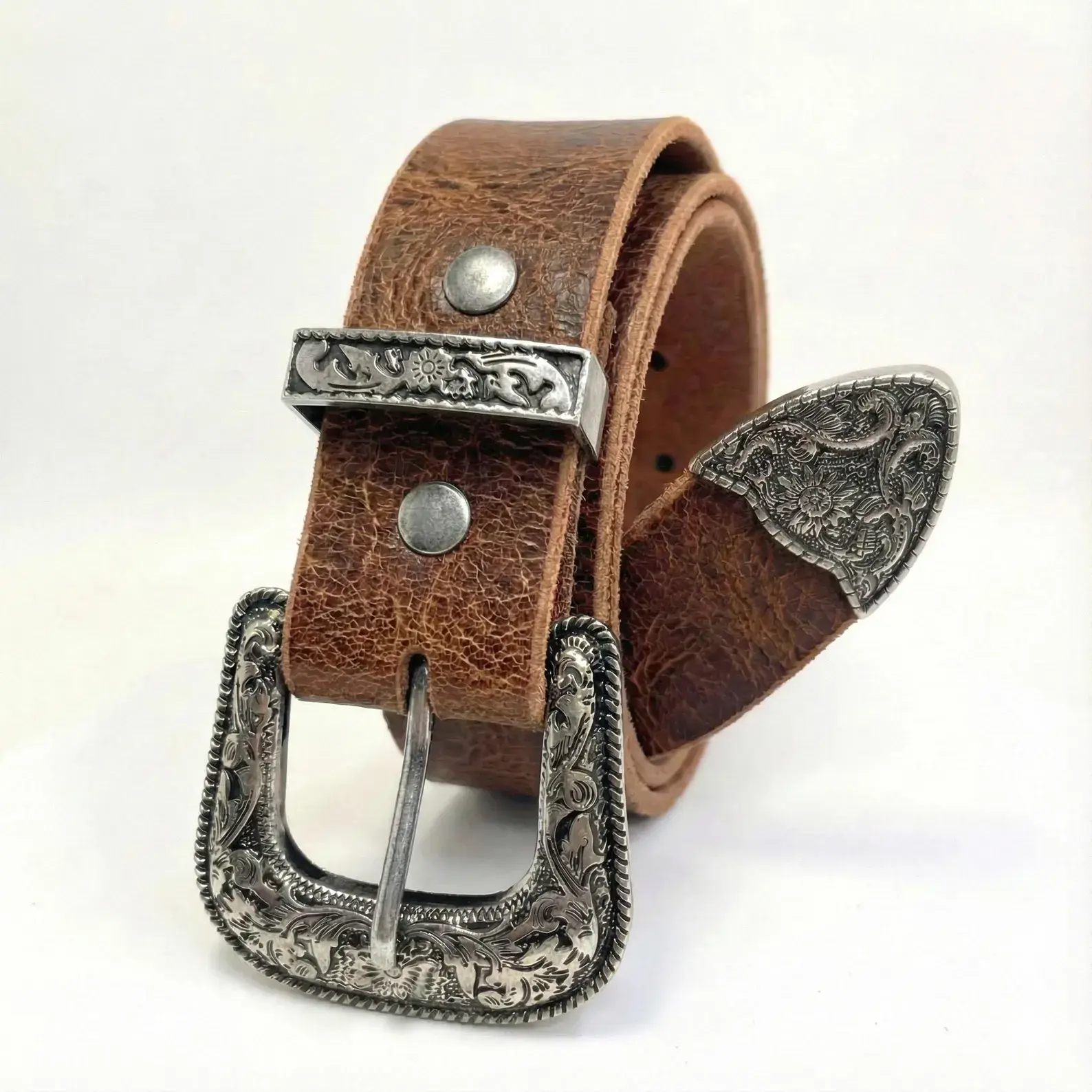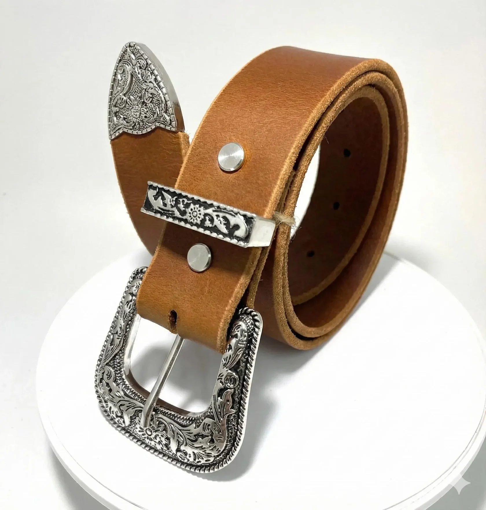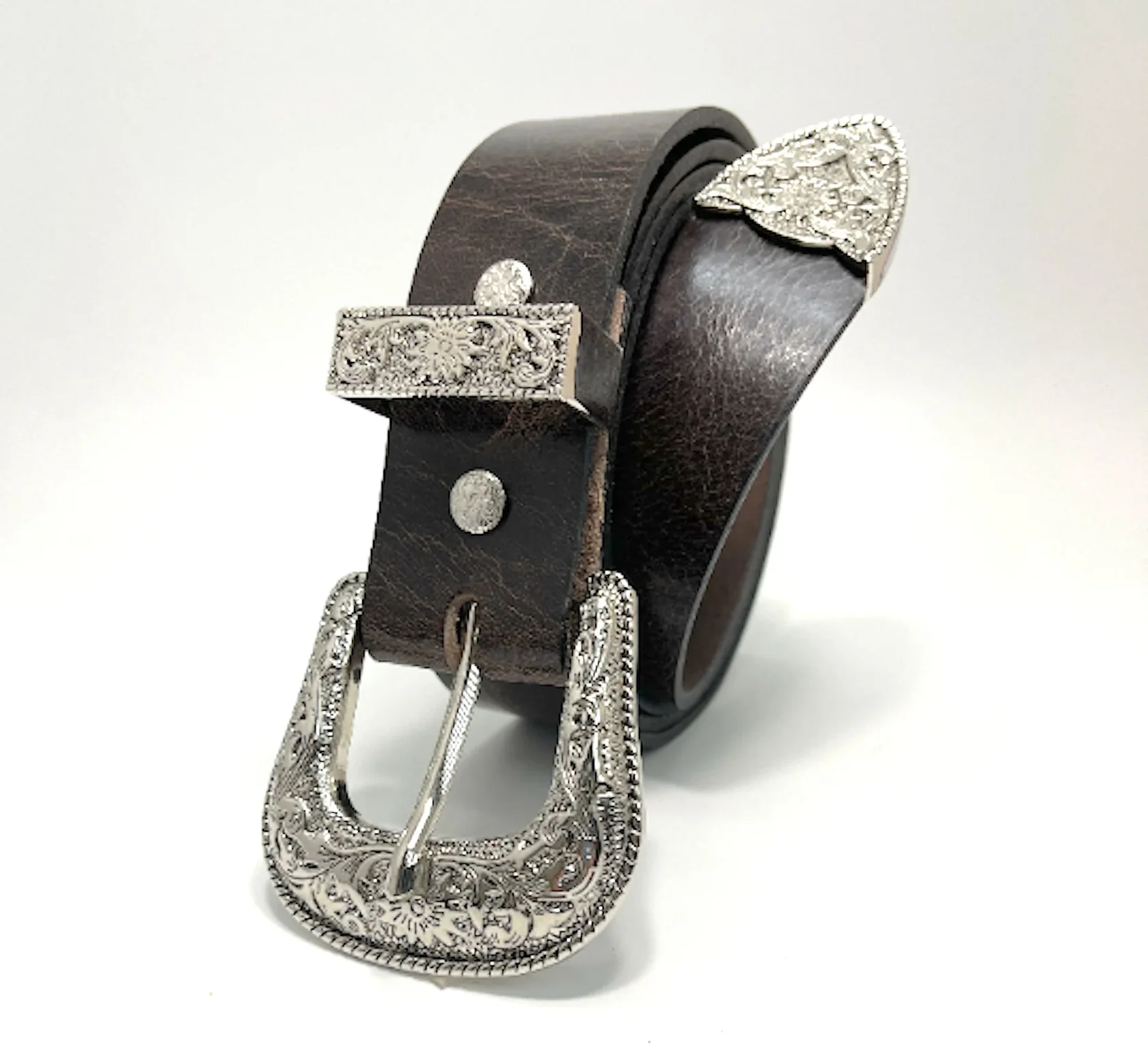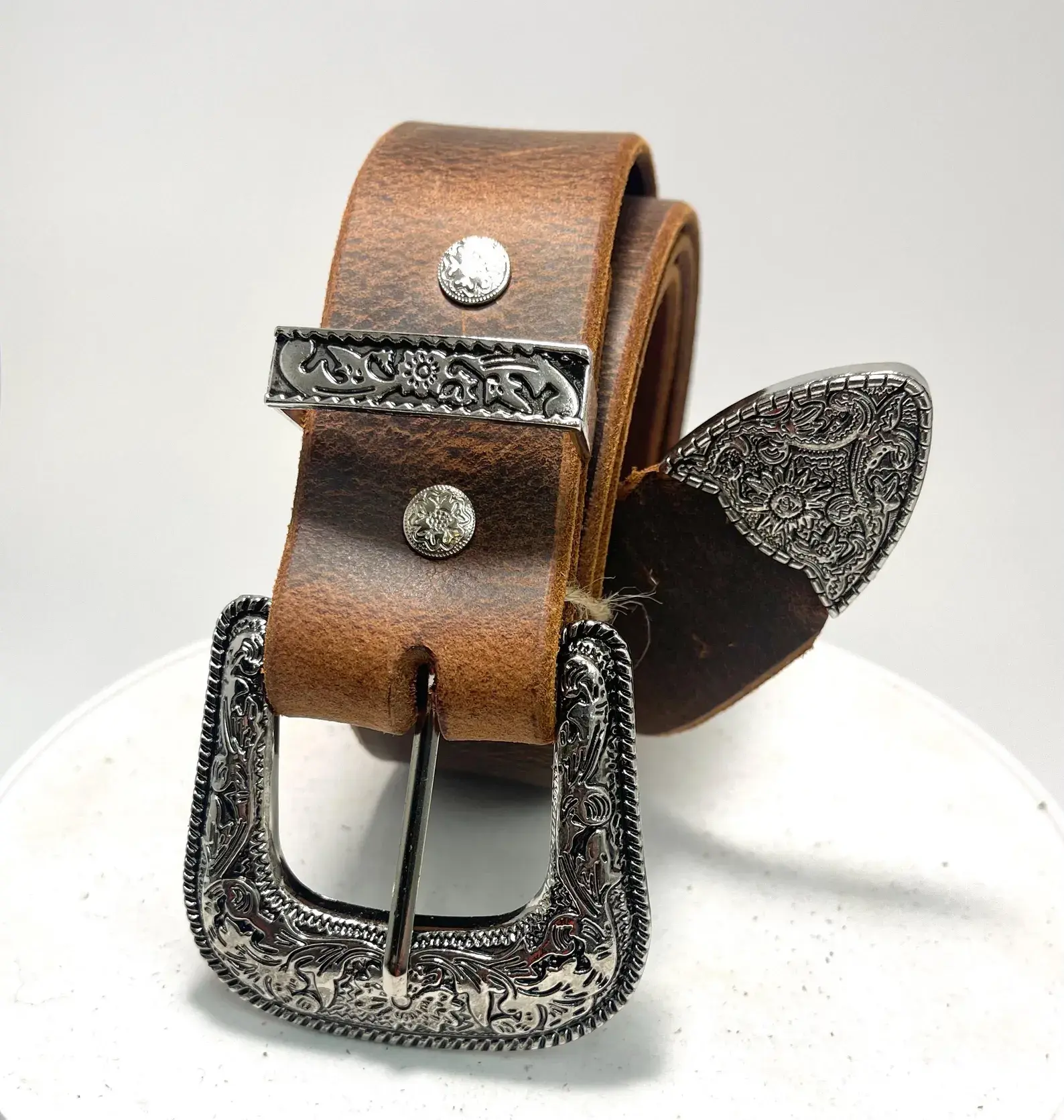 Premium Handcrafted Western Belt (1.5") | Brown Leather | Luxury Hardware | Unisex Design | Silver
