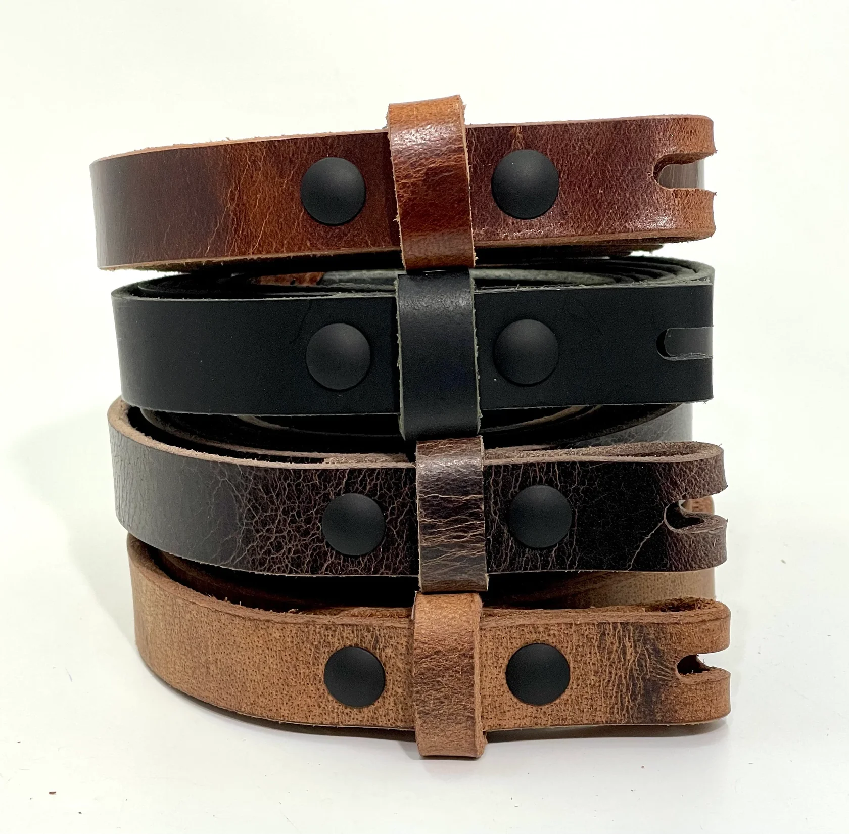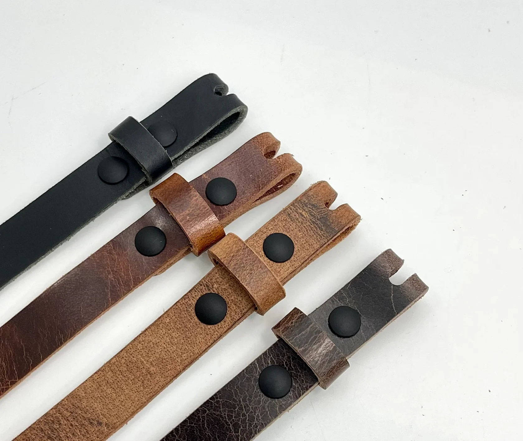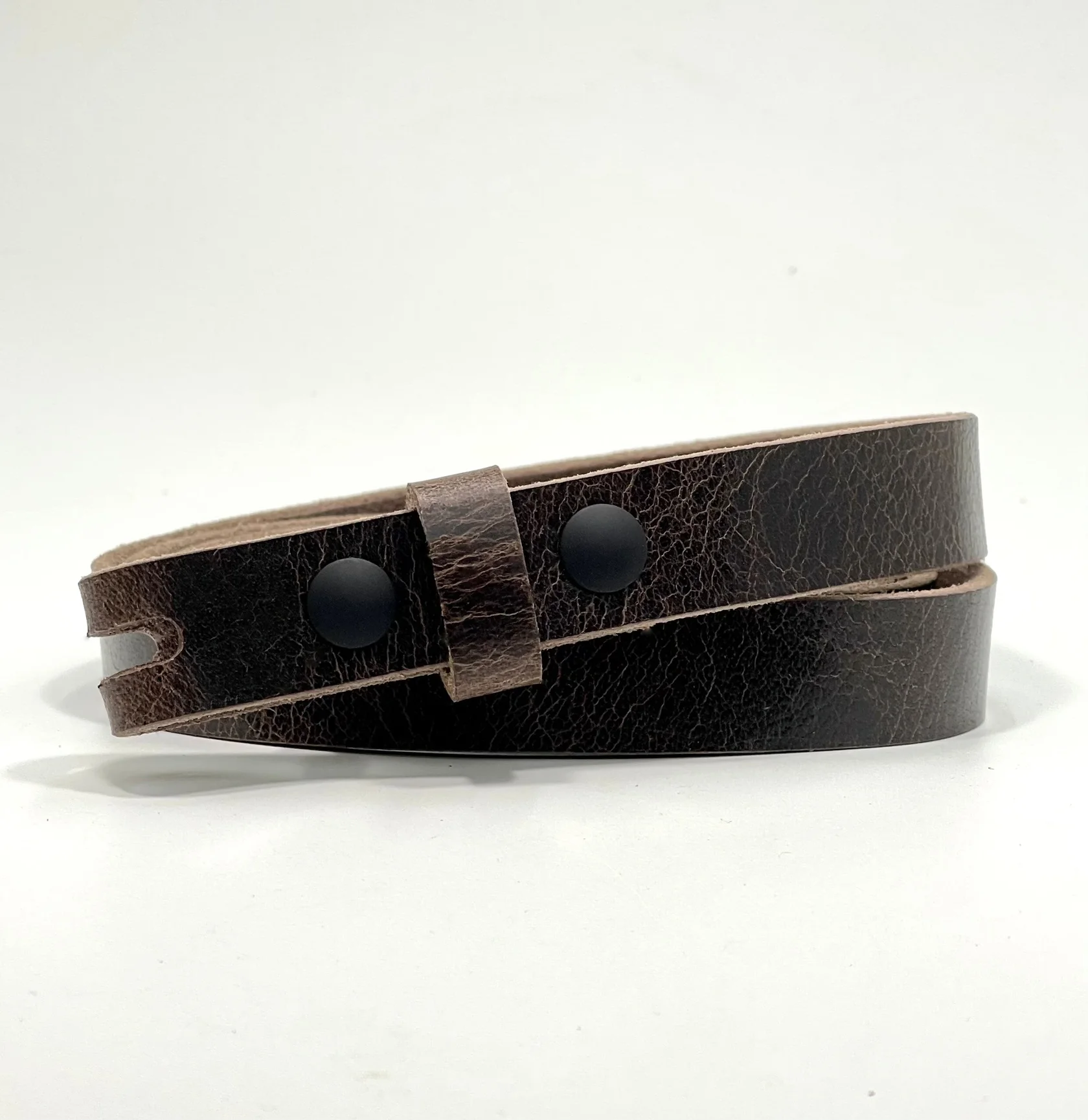 Key features: - Crafted from luxurious Crazy Horse leather that develops a beautiful patina over time - Width: 3/4 inch (19mm) – slim and stylish - Buckles design for easy customization with your favorite buckles - Handmade with attention to detail for lasting quality - Secure and simple fastening with Chicago screws, allowing quick buckle changes