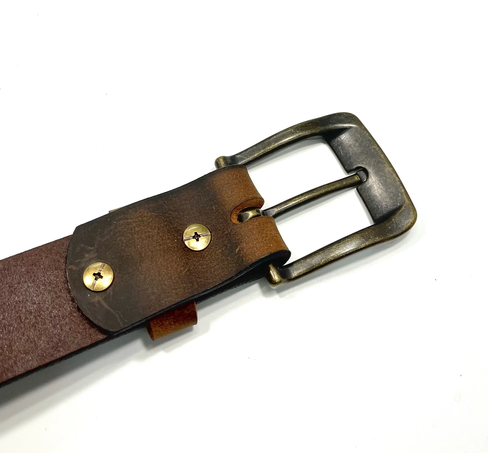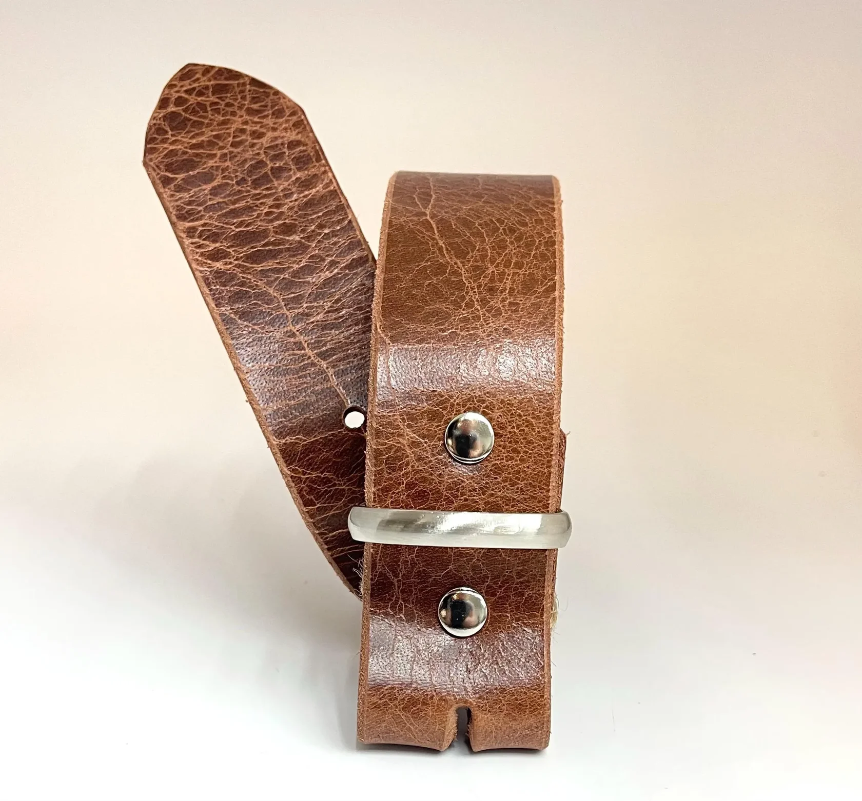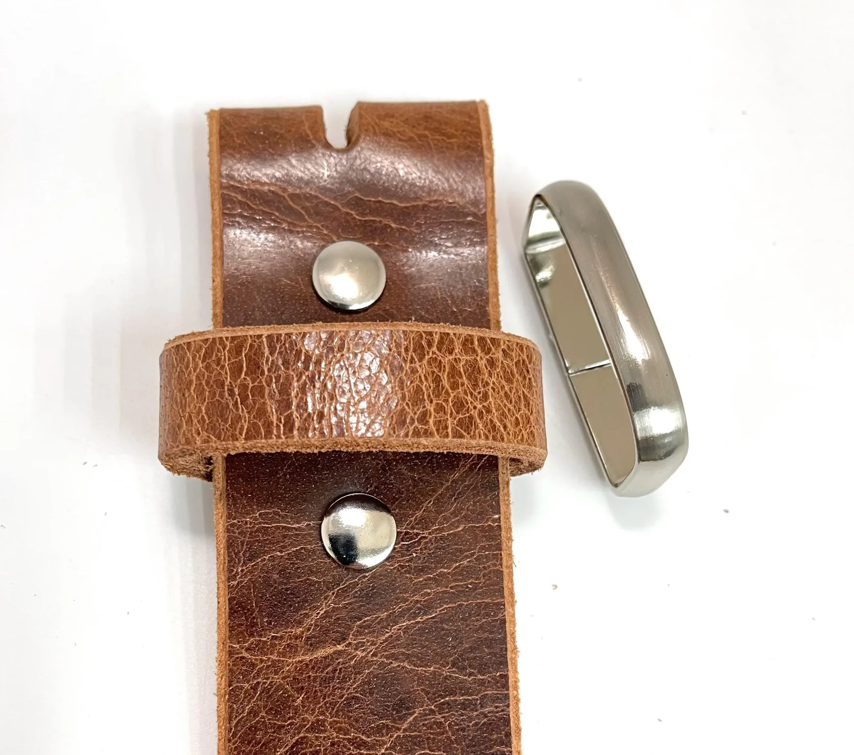 Key features: - Crafted from luxurious Crazy Horse leather that develops a beautiful patina over time - Width: 3/4 inch (19mm) – slim and stylish - Buckles design for easy customization with your favorite buckles - Handmade with attention to detail for lasting quality - Secure and simple fastening with Chicago screws, allowing quick buckle changes