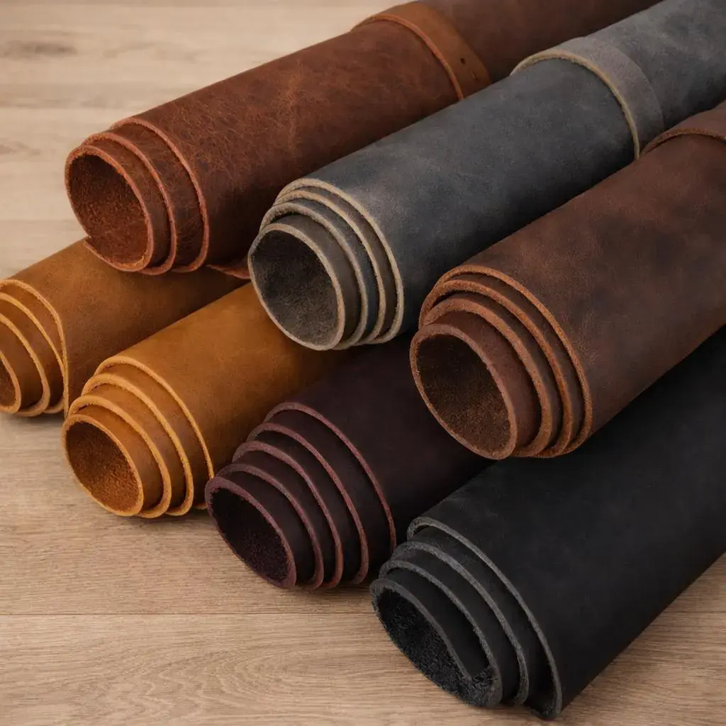 Premium full-grain water buffalo leather sheets, precision cut into ready-to-use panels for leathercraft, DIY projects, and handmade goods. Thick, durable, and rich in character — perfect for makers who want authentic leather with a rustic, vintage look.