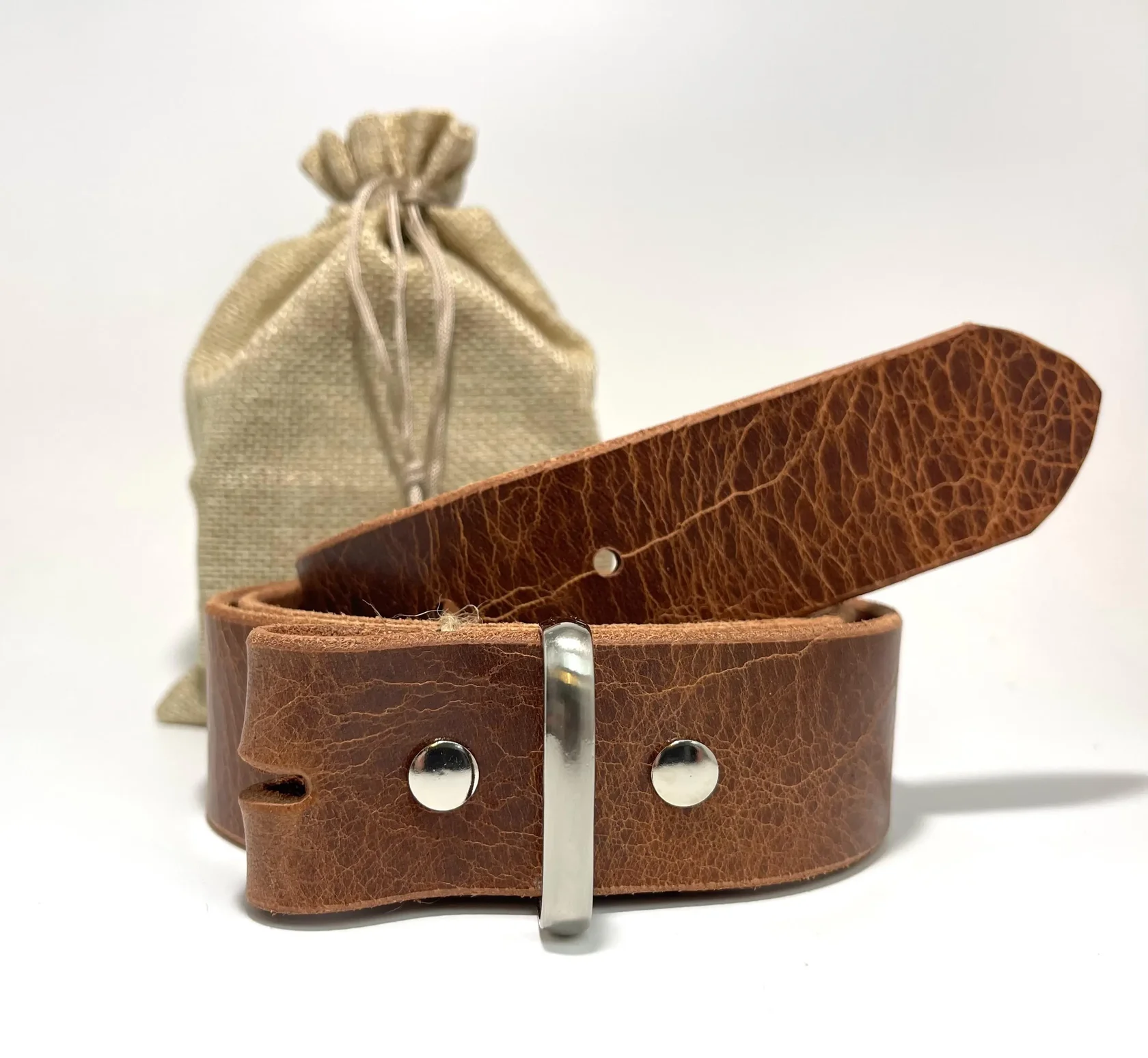 Elevate your style with this Handmade Narrow Womens Leather Belt without a buckle, crafted from premium Crazy Horse leather. At just 3/4 inch (19mm) wide, this sleek and versatile belt is perfect for adding a subtle touch of sophistication to any outfit. Designed for women who love customization, it features a buckleless design that allows you to easily swap out your favorite buckles using Chicago screws—giving you endless styling options without the waste.