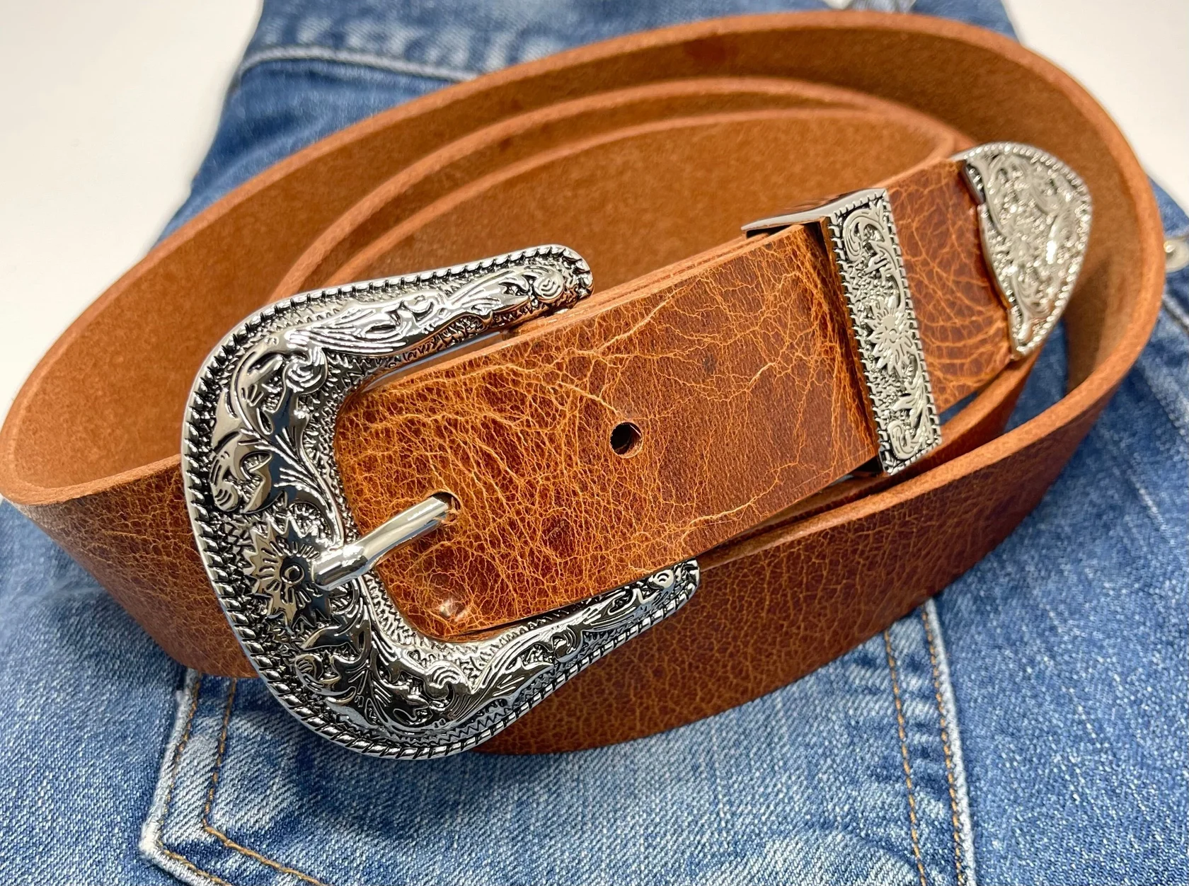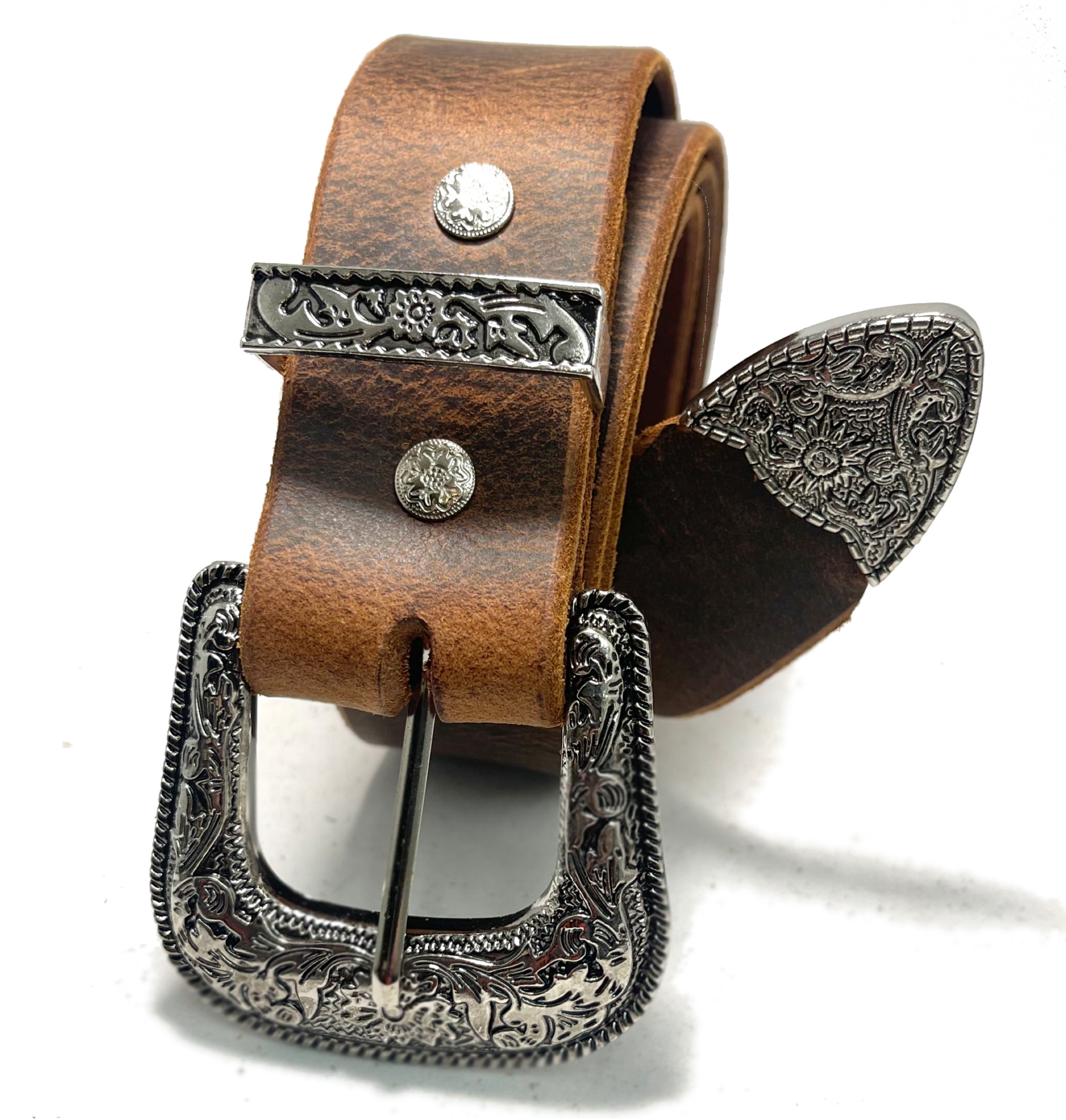 Premium Handcrafted Western Belt | Brown Leather | Luxury Hardware | Unisex Design | Silver