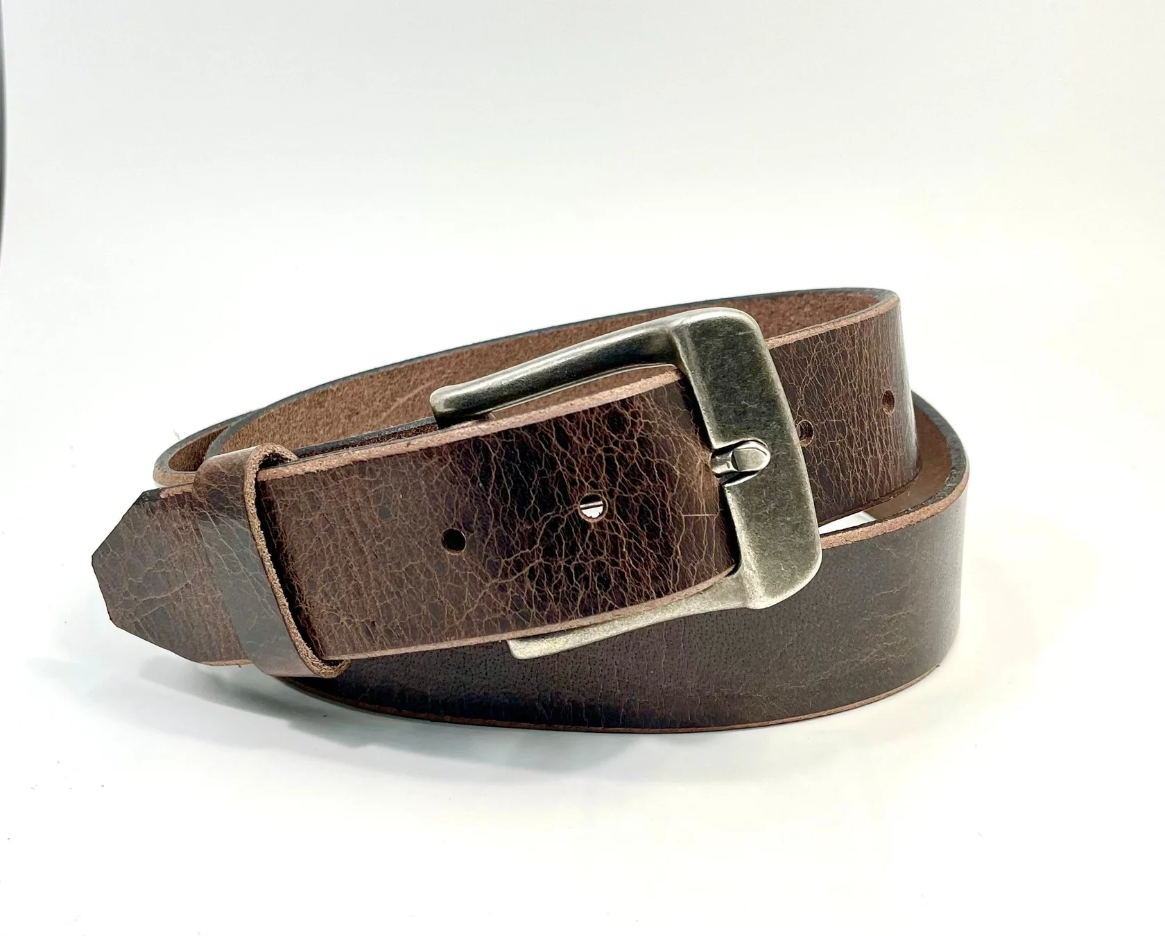 Key Features: - Crafted from genuine Crazy Horse leather and water buffalo hide for a unique, textured finish - Handcrafted in the USA with attention to detail and quality - Features a sturdy metal buckle that complements the rich brown tone - Designed for comfort and longevity, suitable for daily wear - Available in standard sizes, with adjustable holes for a perfect fit - Easy to care for – just wipe clean and condition periodically to maintain its luster