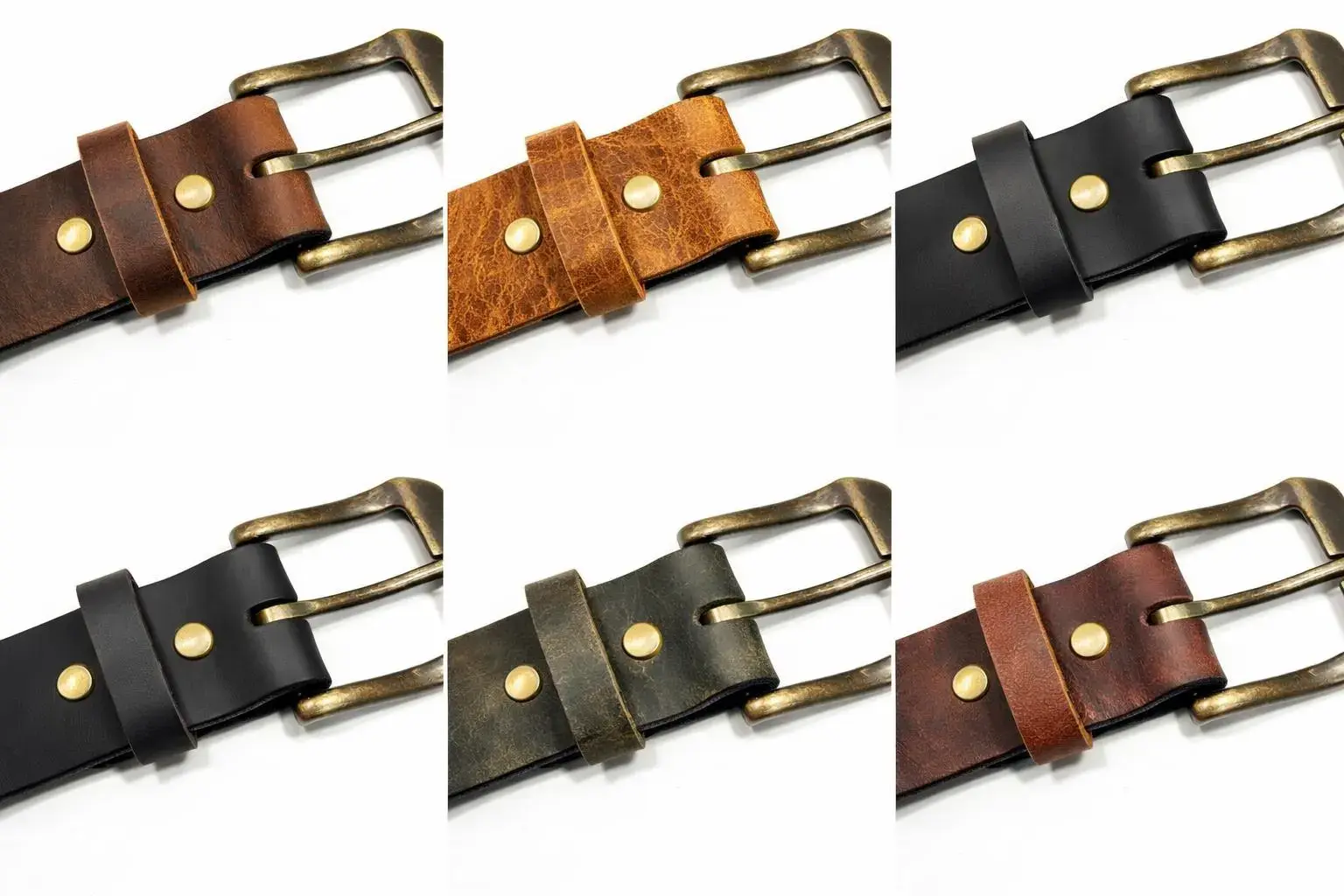 Made in the USA from full grain leather, each belt is carefully cut from a single piece of high-quality hide, ensuring strength and a natural, authentic look that develops a rich patina over time. Unlike mass-produced belts made from split leather, our handcrafted belt provides unmatched durability and character, making it an heirloom-quality piece that improves with age.