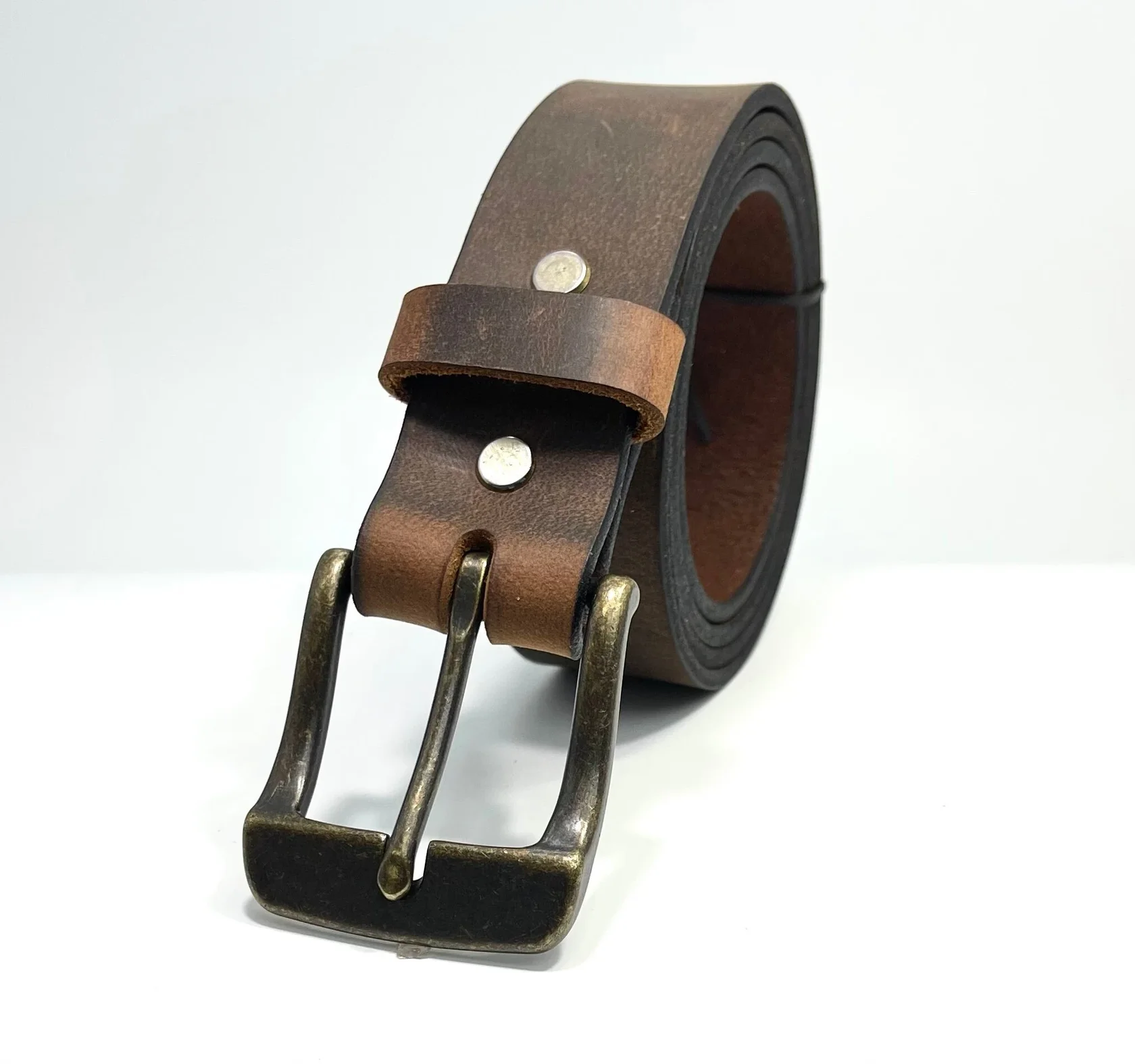 Elevate your everyday style with our Handmade Leather Belt for men, crafted from premium Crazy Horse leather and water buffalo hide. This handcrafted genuine leather belt combines durability, timeless design, and superior craftsmanship to become a staple accessory in your wardrobe. Whether dressing up for a special occasion or adding a rugged touch to casual wear, this men's belt offers versatility and lasting quality.