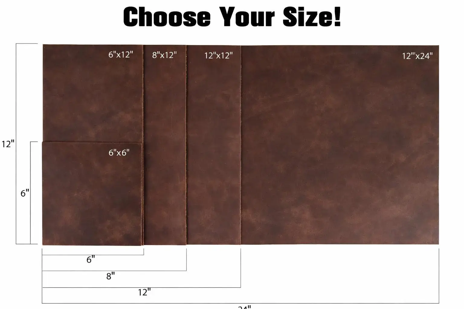 🔍 Why Choose Our Buffalo Leather Sheets ✔ Genuine Water Buffalo Leather ✔ Full Grain – strongest layer of the hide ✔ 8–10 oz thickness (3–4 mm) ✔ Medium temper – firm yet easy to work with ✔ Smooth, clean flesh side ✔ Vintage / rustic pull-up character ✔ Easy to cut, punch, stamp & engrave ✔ Ethically sourced & eco-conscious tanning ⚠️ Due to natural oil content, this leather is not recommended for wet molding. 📐 Ready-to-Use Pre-Cut Sizes Our pre-cut buffalo leather panels save you the hassle of cutting and let you start creating immediately.