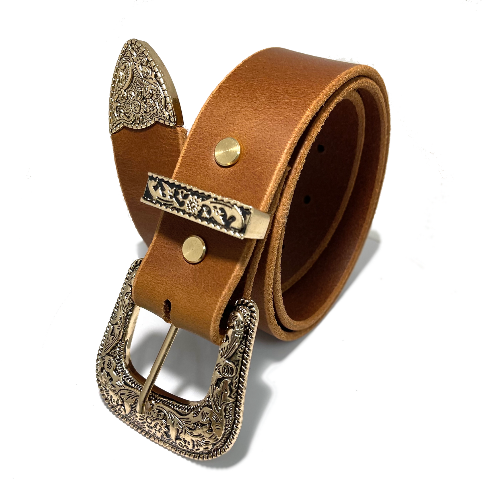 Artisan Western Leather Belt | Hand-Assembled Premium Leather | Gold Luxury Fittings